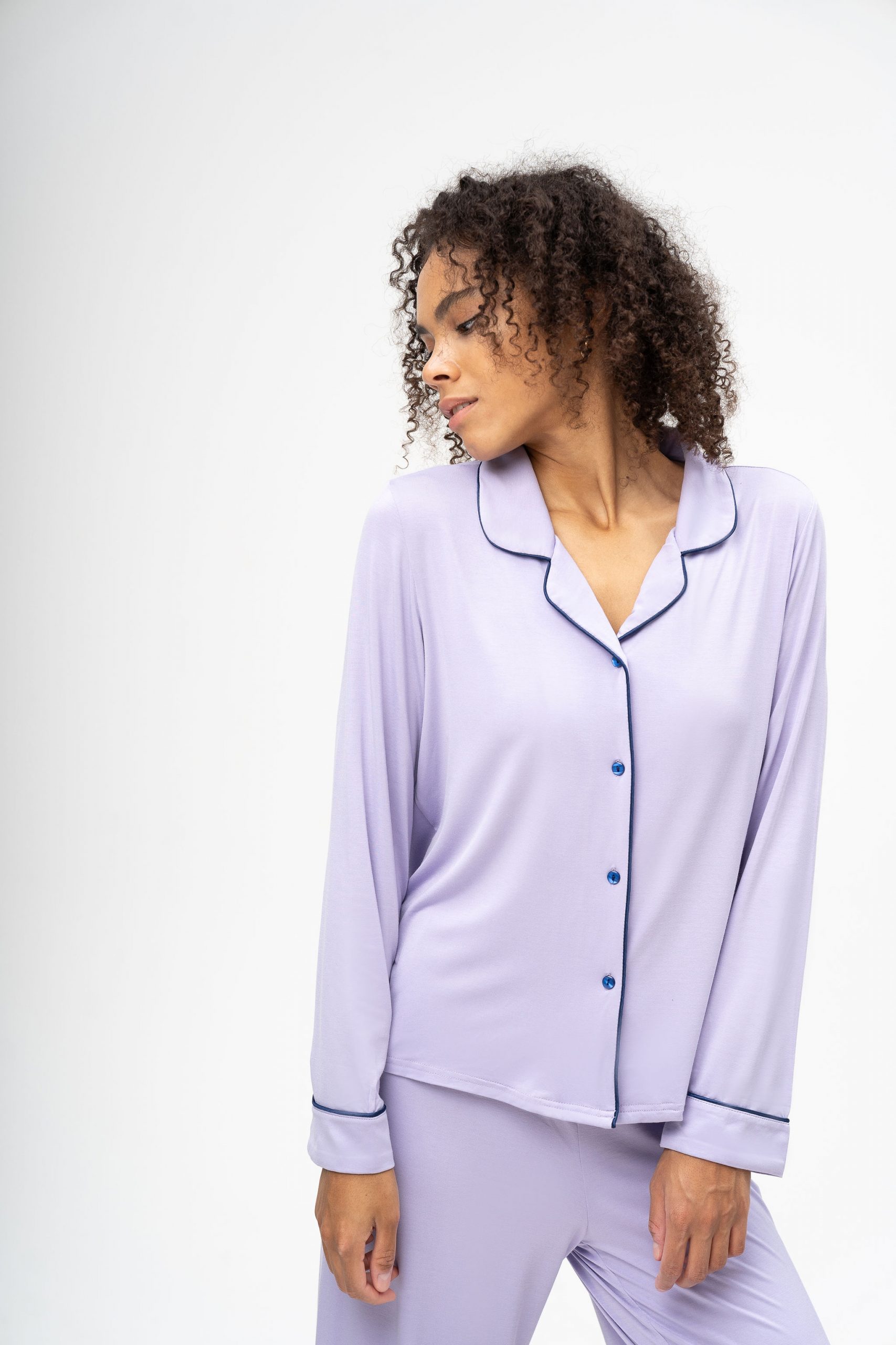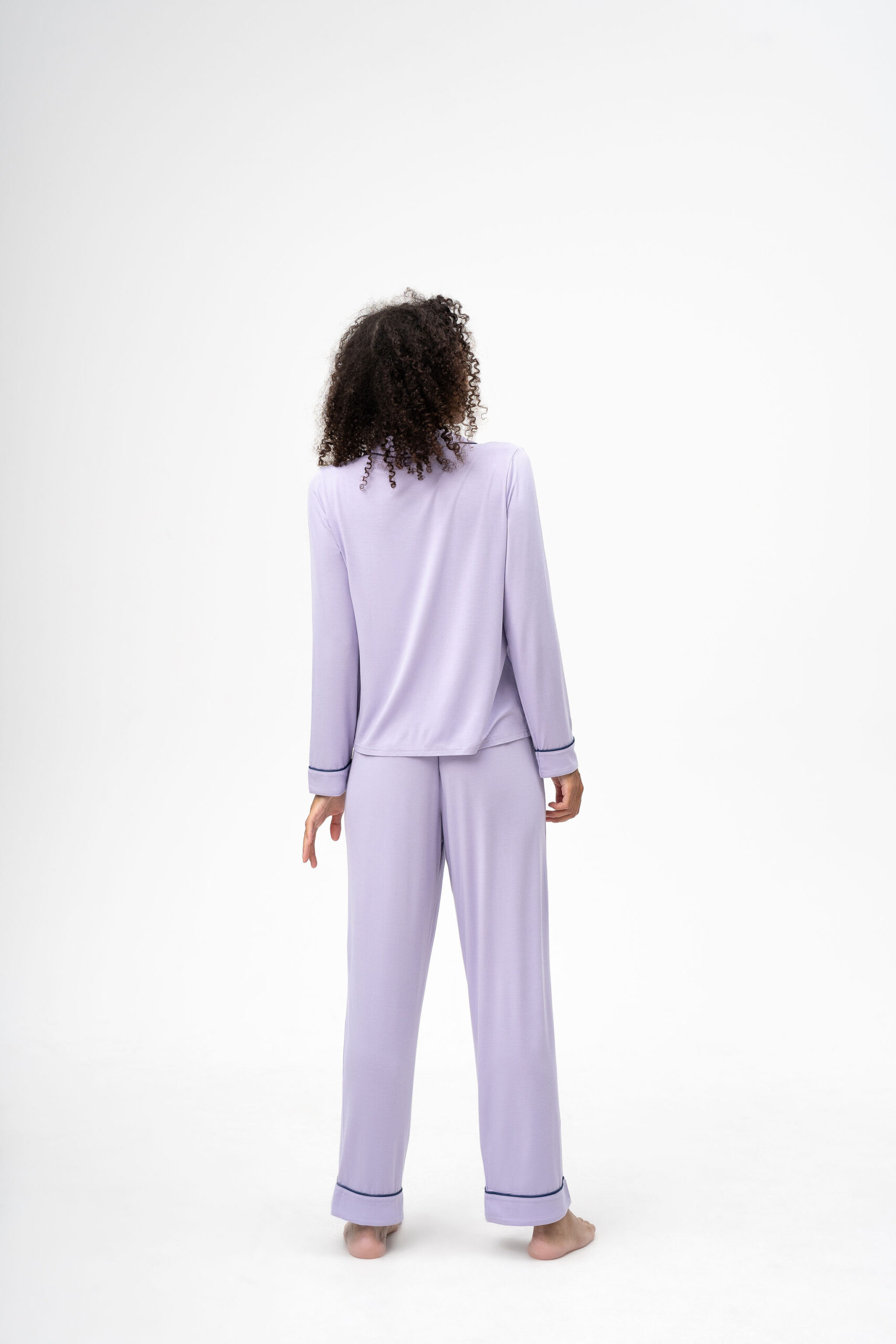 long sleeve button-down bamboo pajama Set for Women-Delila