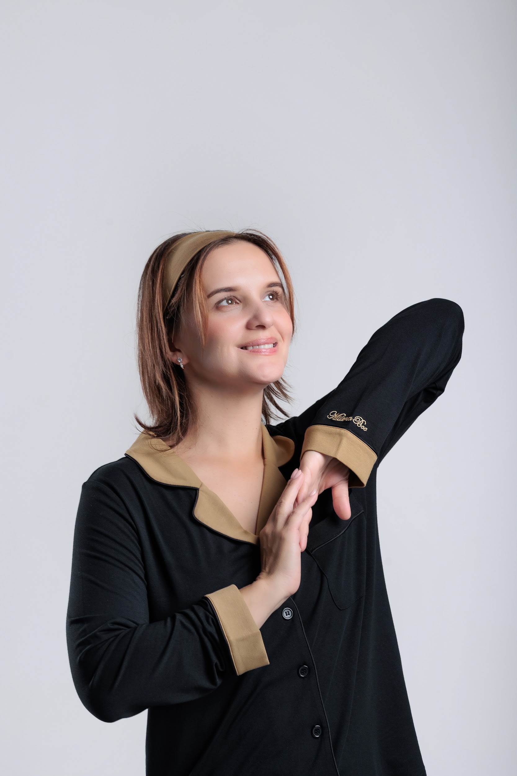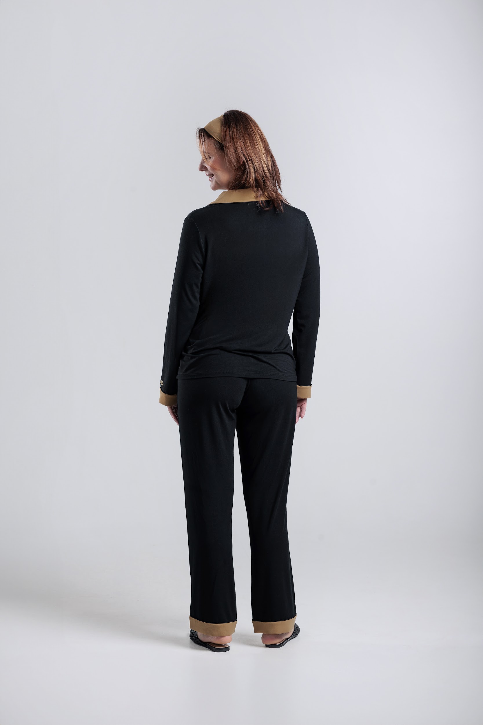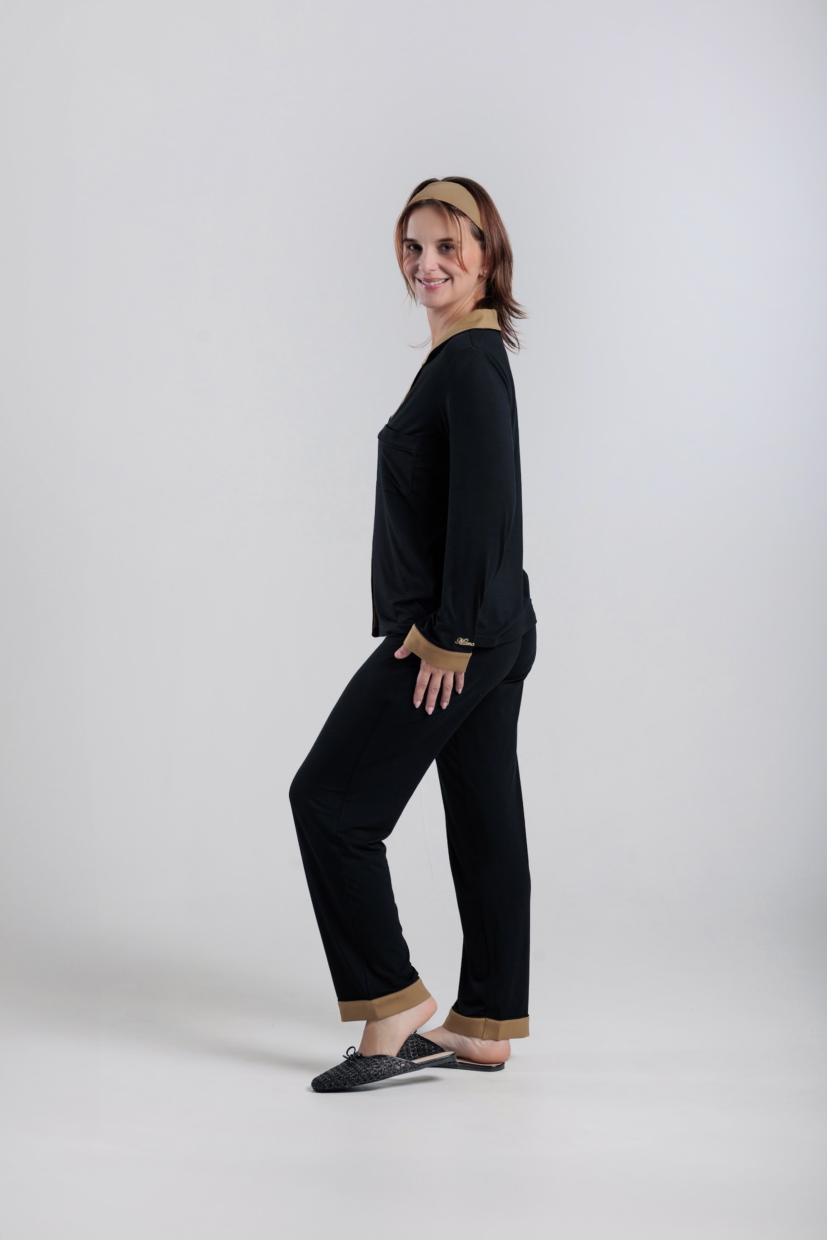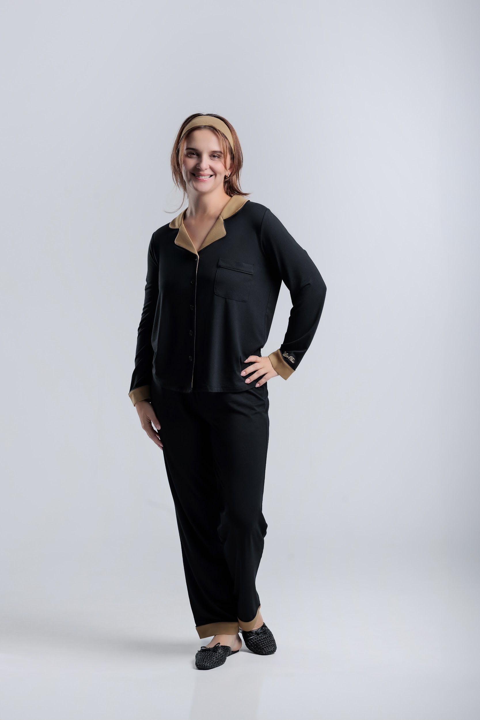 long sleeve button-down bamboo pajama Set for Women- Noire’ (PJ Couture Collection)